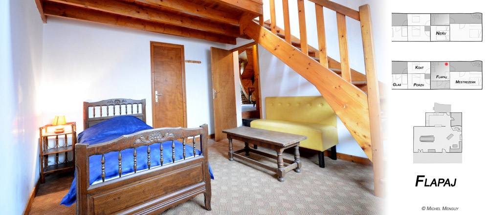 Mestrezenn (1 lit double 140 & 1 lit de 90) ; Flapaj (1 lit simple 90) ; Porzh et Koat (2 lits doubles 140) ;