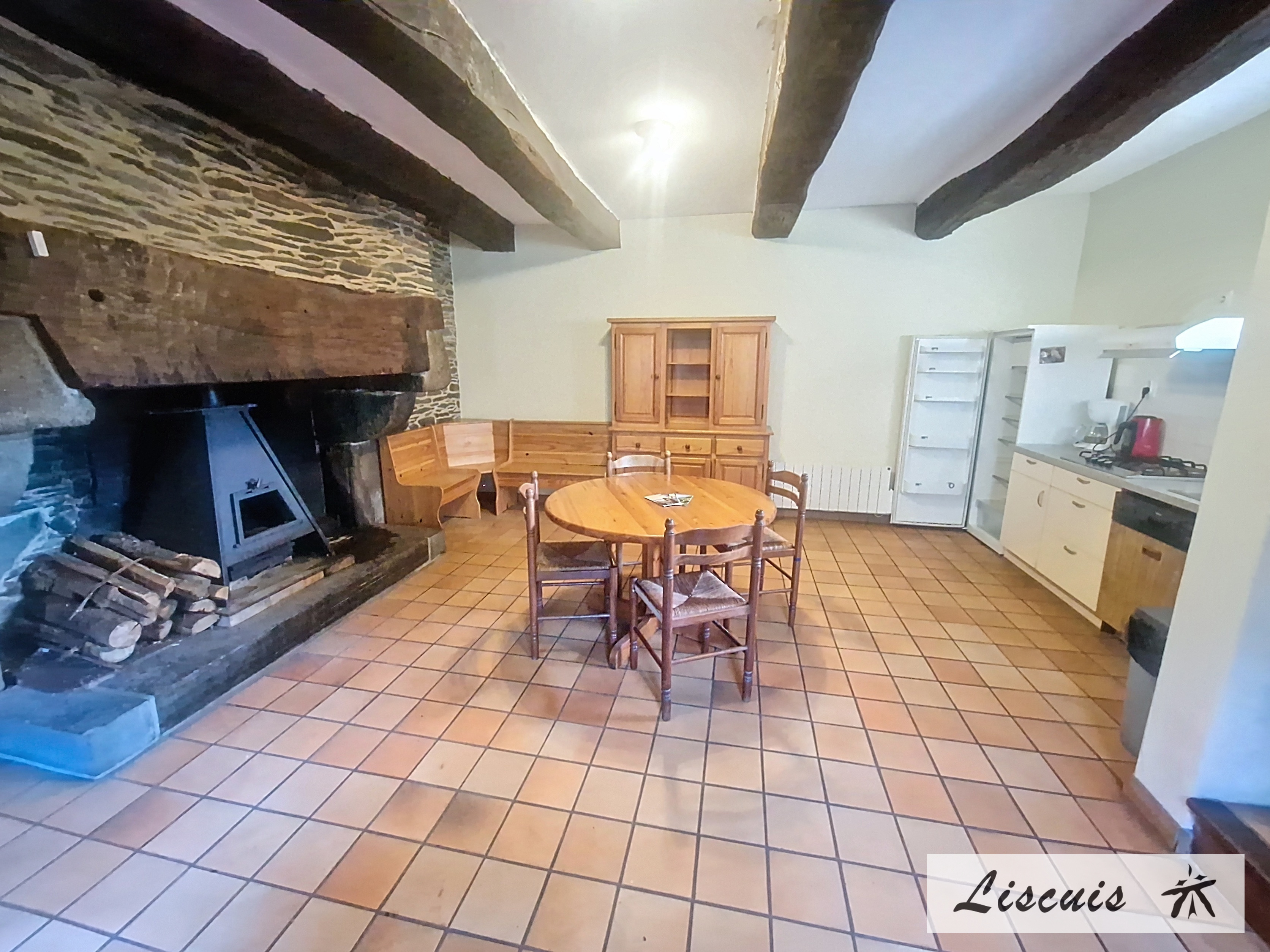 Cheminée, lave vaisselle, plaque cuisson 4 feux gaz, micro-ondes, four, antenne tv, wifi